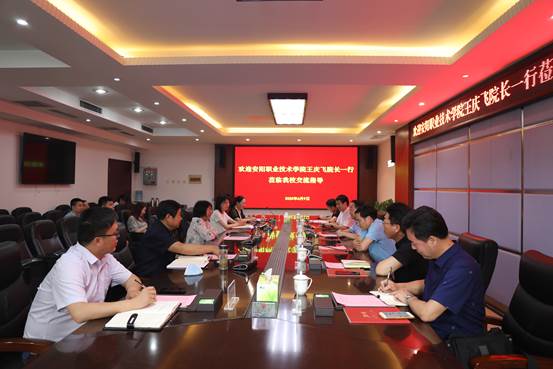 6月9日上午,安阳职业技术学院院长王庆飞一行来我校考察交流,我校校长祝玉华,副校长焦爱萍,以及党政办公室、科技处、信息工程学院负责人接待了来访客人。