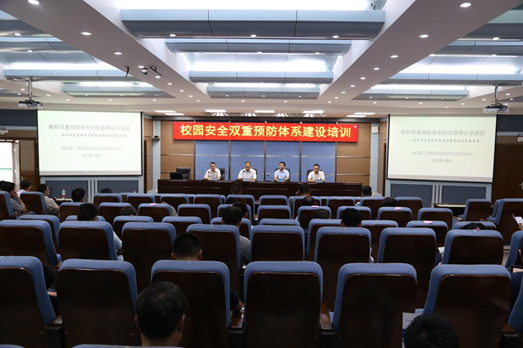 随后,张克胜博士以《解析双重预防体系的实质和认识误区—谈如何在实践中发挥双重预防体系的作用》为题,分别就双重预防体系建设的背景、双重预防体系的构成进行了全面解析,并根据当下存在的双重预防体系建设的五个误区,提出了校园安全管理的五个意识:培养以人为中心的预防意识、培养高校安全的社会窗口预防意识、培养综合联动的预防意识、培养风险和隐患的动态预防意识、培养师生全员参与的集体安全意识。