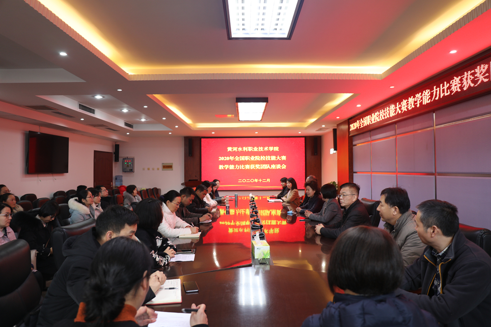 12月14日上午,我校在行政楼第一会议室举行2020年全国职业院校技能大赛教学能力比赛获奖团队座谈会。校党委书记周保平、校长祝玉华、副校长杨士恒、党委副书记刘卫锋、副校长焦爱萍等出席会议,党政办公室、党委组织部、党委宣传部、教务处等部门负责人及各教学院部相关负责人、各获奖团队成员参会。