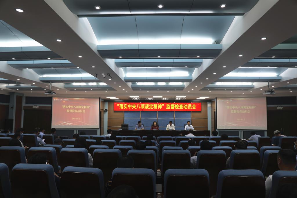 5月27日上午,我校在3号实训馆学术报告厅召开“落实中央八项规定精神”监督检查动员会,安排部署我校贯彻落实中央八项规定精神监督检查工作。校领导周保平、胡昊、杨士恒、刘卫锋、焦爱萍、菅浩然出席会议,全校中层干部和省级科研平台负责人参会。会议由校长胡昊主持。