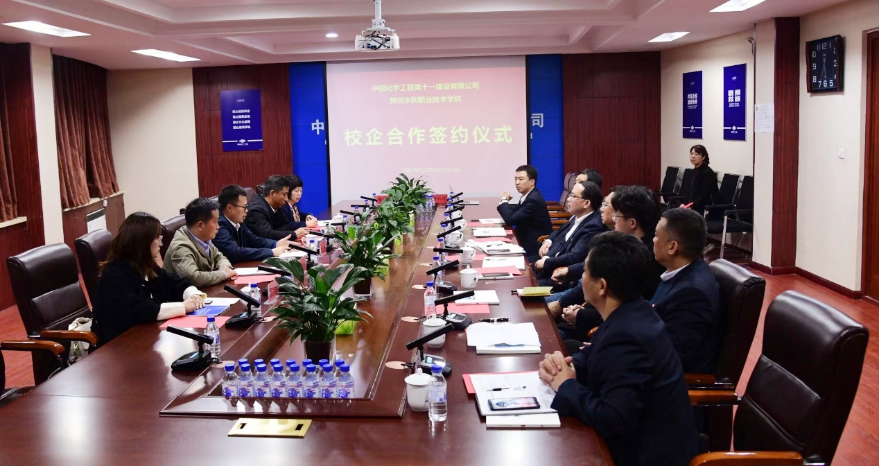 11月15日下午,我校与中国化学工程第十一建设有限公司(以下简称中化集团十一公司)校企合作签约仪式在中化集团十一公司会议室举行。我校校长胡昊、副校长菅浩然,中化集团十一公司总经理姚景浩,副总经理白涛出席签约仪式。会议由中化集团十一公司人力资源部部长袁建主持。我校国际教育学院党政负责人和相关老师一起参加了签约仪式。