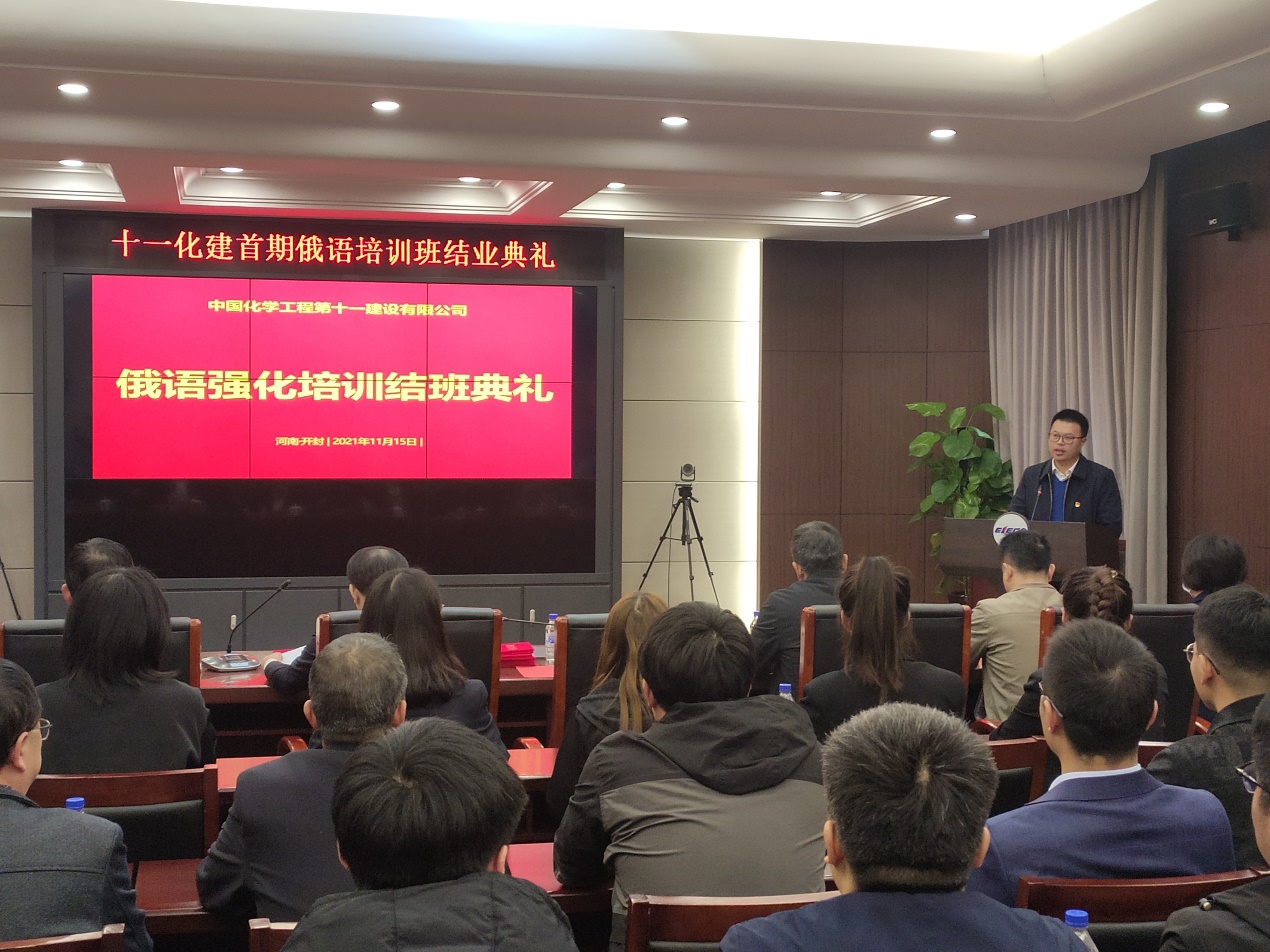 11月15日下午,由我校承办的中国化学工程第十一建设有限公司(以下简称中化集团十一公司)工程项目管理人员俄语强化培训班结业典礼,在中化集团十一公司多功能报告厅顺利举行。我校校长胡昊、副校长菅浩然、国际教育学院党政负责人,以及中化集团十一公司总经理姚景浩、副总经理白涛出席典礼并为学员颁发结业证书。