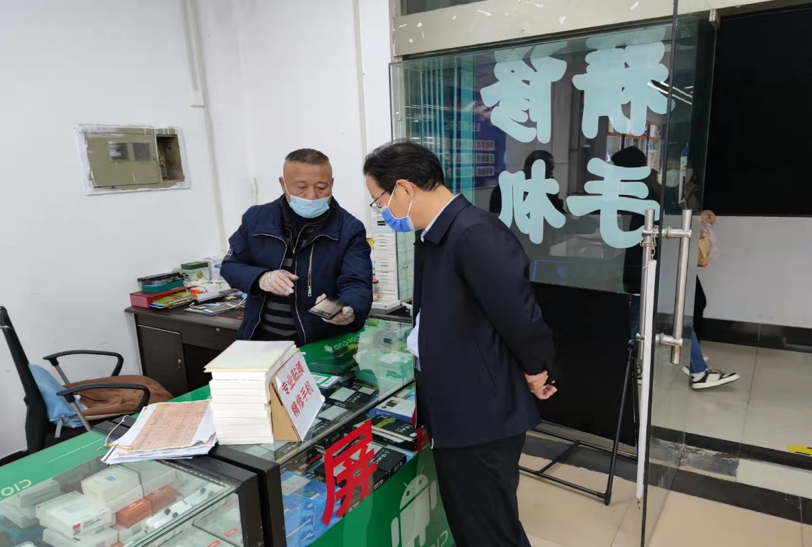 刘守义到学校各商业网点仔细查看了经营人员健康码、行程码和核酸监测报告,并对商店内商品的价格、生产日期、储存保鲜等进行了认真细致的检查。