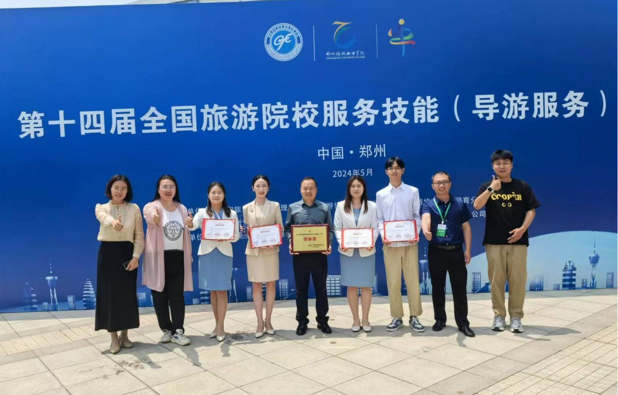 5月23日至26日,第十四届全国旅游院校服务技能(导游服务)大赛在郑州旅游职业学院举行。我校4名同学参赛,经过激烈角逐,许子静同学获得一等奖,张桢柯、寇昭阳、李婷同学分获二等奖,以综合排名第九的成绩荣获团体奖。