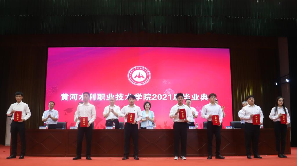 校长胡昊为毕业生代表颁发毕业证书。党委副书记刘卫锋宣读2021届省级、校级优秀毕业生表彰文件。校领导为优秀毕业生代表颁发荣誉证书。