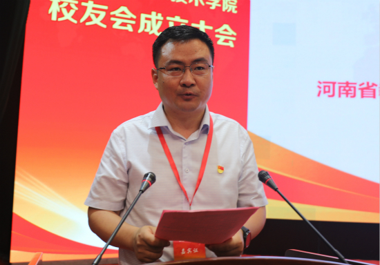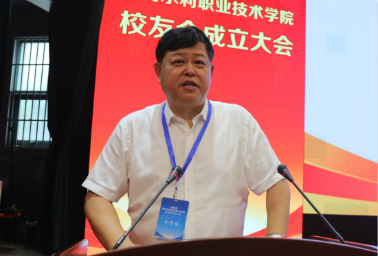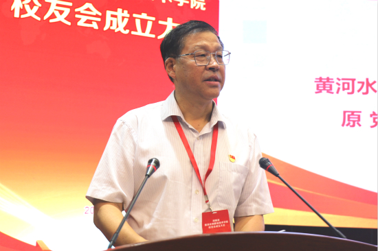 校友会会长赵国训讲话。他说,母校是校友成长的摇篮,更是校友心灵的港湾。黄河水院校友奋战在祖国的大河上下、大江南北,为国家经济社会的发展做出了重要贡献。他表示,校友会的成立架起了母校与校友沟通的桥梁,也搭建了校友之间联络感情的平台,更标志着学校校友工作迈入新的历史时期和发展阶段。校友会将继续秉承“联系校友、服务校友、宣传母校、奉献母校”的宗旨,团结带领广大校友,严格遵守《校友会章程》,构建更加完善的校友工作体系,积极推动建立健全各地校友会组织,大力建设特色鲜明的校友文化,积极开展各种校友活动畅通校友参与学校建设与发展的渠道,使校友会成为校友与母校间传递信息、交流经验、相互帮助、创造成果的重要平台,开创校友工作的新局面。