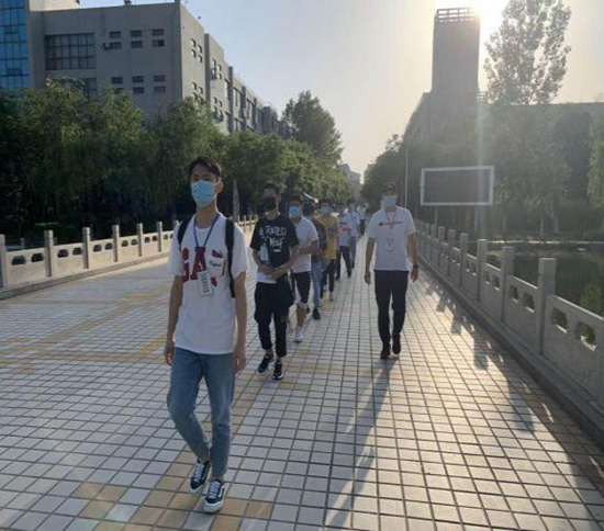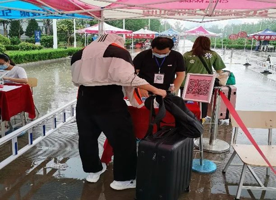 无论是烈日炎炎,还是狂风暴雨,为了返校复学工作的顺利进行,为了保障学生们的健康安全,学工人员始终坚守在第一线。他们在38度的高温下,穿上密不透风的防护服,认真仔细地为每一位返校的学生消毒杀菌、核验身份、交待注意事项,任汗水浸透衣衫,不给病毒侵入校园的机会;他们在滂沱的大雨中,坚守在小小的帐篷下,快速准确地为返校学生办理入校手续,递上充满温情的返校礼包,热情地对学生说“欢迎返校”;他们一遍遍向学生核对返校信息和返校行程,在校门口支起帐篷,从早七点坚守到晚七点迎接学生返校;他们在学生宿舍值班,带着学生排队一日三餐去餐厅,带着学生去教室上课、考试,帮助学生整理行李、打扫宿舍。