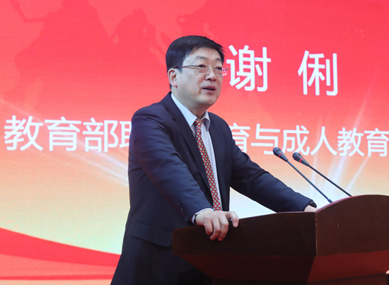 谢俐致辞。他指出,2019年是职教战线不平凡的一年,“职教20条”印发、高职扩招100万、全国深化职业教育改革电视电话会议对职教改革发展工作作出部署,教育部党组明确提出要以中国特色职业教育体系为核心,以标准化建设为引领,以提质培优、增值赋能为主线,下一盘职业教育大棋,打一场职业教育翻身仗。他表示,在职业教育进入“双高时代”,黄河水院成为高职教育“先行军”的一员,既是对成绩的肯定,更是全新挑战;学校勇担黄河保护与治理使命,为黄河岁岁安澜做出了突出贡献;学校深化中外职业教育合作和产教融合,为国际化高素质技术技能人才培养贡献了中国方案和智慧。他强调,职业教育的发展离不开地方和行业支持,希望水利部、河南省委省政府、中国水利教育协会继续加大对职业教育的关心和支持,协力推进职业教育大改革、大发展,为经济社会发展做出更多贡献。