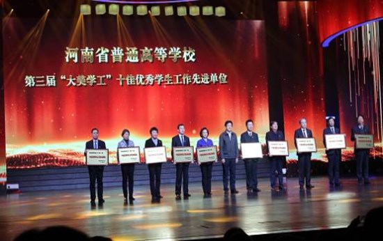 12月3日,由中共河南省委高校工委、河南省教育厅主办,河南师范大学、河南教育时报社联合承办的河南省普通高等学校2019“大美学工”颁奖典礼暨校园文化建设优秀成果展演在新乡平原艺术中心举行。我校党委书记许琰、党委副书记刘卫锋受邀参加颁奖典礼并观摩校园文化建设优秀成果展,学生工作部等相关部门人员同行参加活动。我校在本次活动中喜获河南省第三届“大美学工”十佳优秀学生工作先进单位称号;校团委培育的《“水之韵”大讲堂》荣获河南省第三届普通高等学校校园文化建设优秀成果二等奖;水利工程学院党总支副书记申浩获得河南省第三届“大美学工”十佳优秀学生工作者称号。