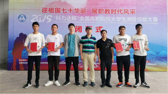 2019年“科力达杯”全国高职院校大学生测绘技能大赛于5月23日—27日在重庆举行,我校参赛队团结协作、奋勇拼搏,荣获“1:500数字测图”赛项一等奖,“二等水准测量”赛项二等奖,团体二等奖。