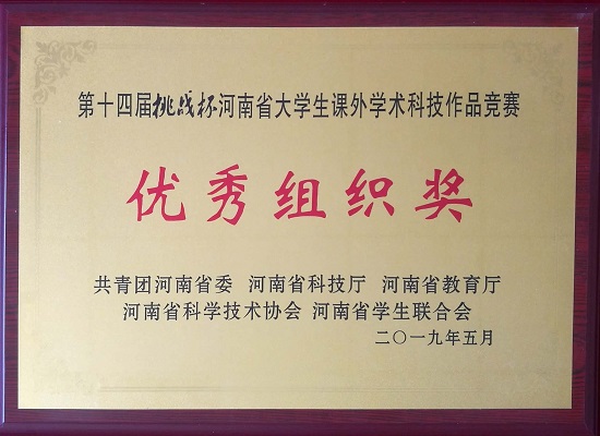 5月29日,第十四届“挑战杯”河南省大学生课外学术科技作品竞赛结果揭晓。我校参赛作品共荣获特等奖1项、一等奖3项、二等奖10项、三等奖14项,学校荣获“优秀组织奖”。