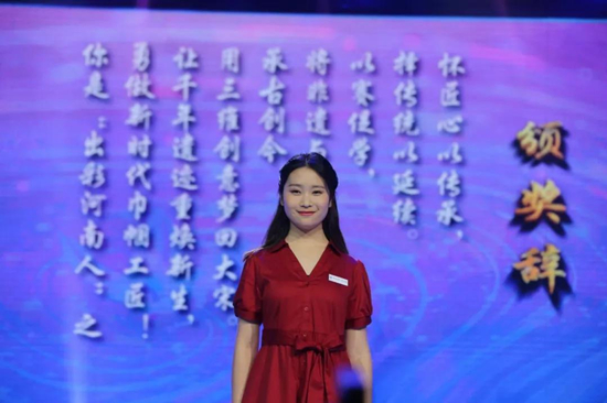 “出彩河南人”之第二届“最美大学生”宣传推介活动由省委宣传部、省委网信办、省委高校工委、省教育厅、河南日报报业集团、河南广播电视台、共青团河南省委等部门共同举办,旨在深入挖掘、宣传一批积极践行社会主义核心价值观的优秀高校学子,展现当代青年大学生崇高的道德品质、无私的奉献精神和勇担社会责任的良好风貌,激励和引导广大青年学生树立正确的世界观、人生观、价值观和荣辱观,使广大青年学生成为德智体美全面发展的中国特色社会主义合格建设者和可靠接班人,为奋力推进教育高质量发展、中原更加出彩贡献力量。“河南最美大学生”申艳霞是我校艺术与设计学院视觉传播设计与制作专业专科三年级学生,靠着对传统文化的热爱,怀着一颗工匠之心,雕琢心中最美的梦想。申艳霞带领团队提出了《三维创意宋匠瓦肆》创新创效创业项目,研发具有宋文化特征与非物质文化遗产相结合的文创产品,实现年销售收入50多万元;先后获国家励志奖学金、“挑战杯——彩虹人生”全国职业学校创新创效创业大赛国赛一等奖和省赛特等奖、第十六届“大学生科技文化艺术节”二等奖、河南省三好学生。正是有了这一代代人的传承和创新,中华文明才得以源远流长,中华优秀的传统文化才能永不褪色。