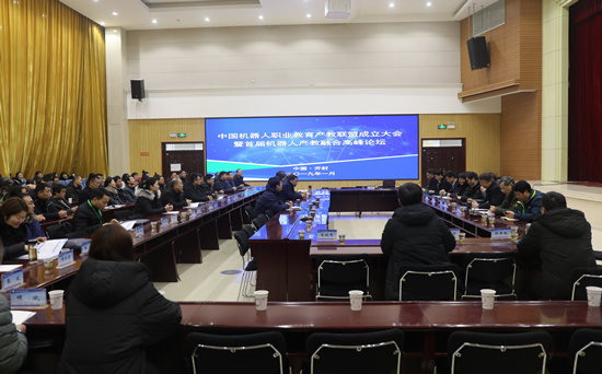 1月12日上午,中国机器人职业教育产教联盟(以下简称“联盟”)成立大会暨首届机器人产教融合高峰论坛在我校举行。中国劳动经济学会副会长、河南省人民政府发展研究中心主任谷建全,国务院发展研究中心副研究员贾珅,中国劳动经济学会常务副秘书长郭丰荣,河南省教育厅高教处调研员秦剑臣,开封市人民政府副秘书长王新世,哈工大机器人集团有限公司总裁助理董冲,校党委书记许琰,党委副书记、校长祝玉华出席大会。全国高职院校和行业企业的50余位代表参会,会议由祝玉华主持。