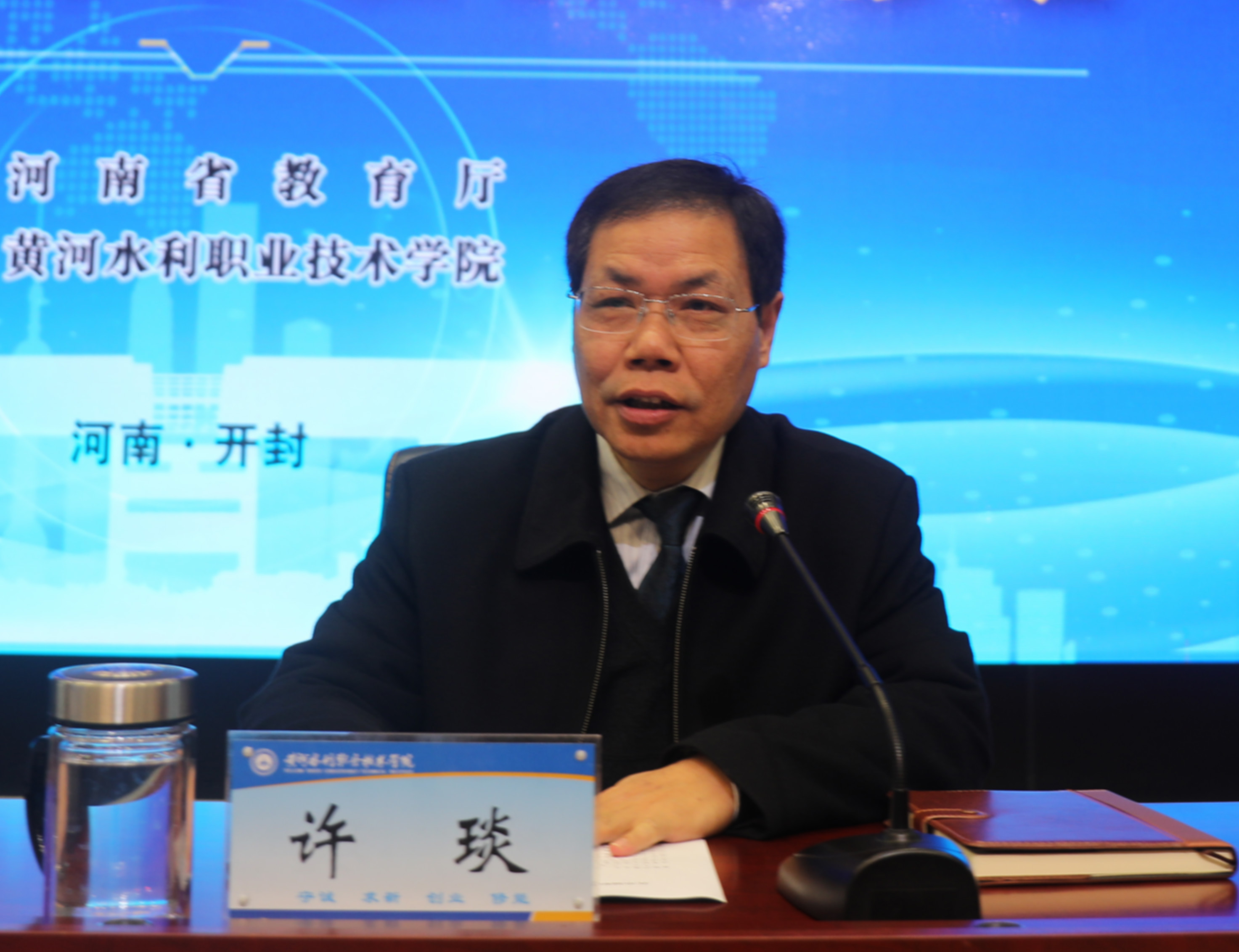 许琰致欢迎辞,他代表黄河水院全体师生员工对“卓越职业院校骨干校长专题研修班”的开班表示热烈祝贺,对参加研修班的各位领导表示诚挚欢迎,对省教育厅的信任和支持表示真诚感谢。他简要介绍了我校的发展历史、办学特色和办学成就。他强调,在党的十九大精神和全国教育工作会议精神引领下,高职教育要准确把握事业发展面临的新形势、新任务,抓住机遇、超前布局,以更高的站位、更宽广的视野、更深邃的战略眼光,紧跟国家政策和区域经济发展,加快推进产教融合、校企合作,创新人才培养模式,推动高等职业教育高质量发展,助力教育现代化建设。他介绍了本次研修班的培训内容,并表示我校一定尽心竭力为培训做好服务,希望参训学员通过培训,相互分享经验、激发智慧、解决困惑、明确方向、凝聚共识,共同为助推河南高职教育事业发展贡献力量。