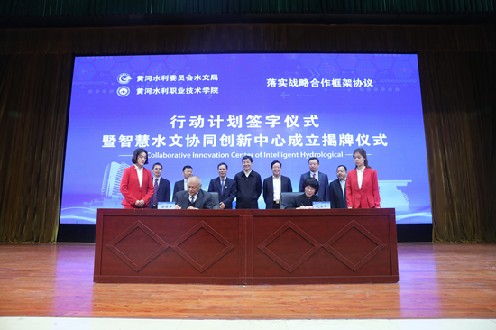 11月2日,我校与水利部黄河水利委员会(以下简称“黄委”)水文局共建的“智慧水文协同创新中心”(以下简称“中心”)签约揭牌仪式,在学生活动中心报告厅隆重举行。中国水利教育协会会长黄河,河南省教育厅副巡视员李金川,黄委水文局局长谷源泽、党组书记贺树明,河南省教育厅科技处正处级调研员杨学勇,黄河水文科技有限公司董事长、总经理张永平,我校党委书记许琰,党委副书记、校长祝玉华,副校长杨士恒,党委副书记刘卫锋,副校长焦爱萍等出席签约揭牌仪式,黄委水文局相关部门负责人、学校全体中层干部及水利工程学院部分师生代表参加仪式,仪式由焦爱萍主持。