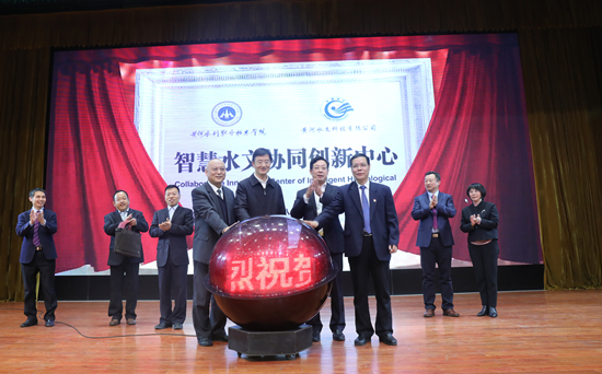 黄河、李金川、贺树明、许琰共同为“智慧水文协同创新中心”揭牌。