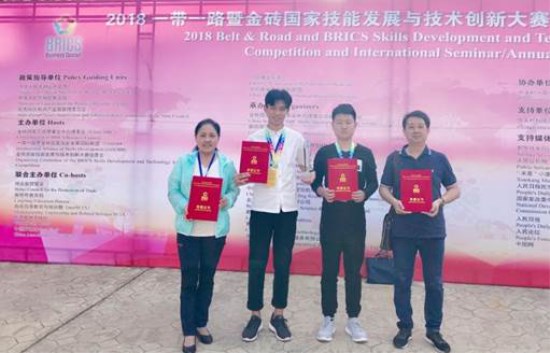 9月4日—8日,由中国政府及金砖国家支持参与、金砖国家工商理事会(BRICS BC)主办的“2018年一带一路暨金砖国家技能发展与技术创新大赛”在河北廊坊职业技术学院举行。在15支代表队参加的“物联网技术与技能”赛项比赛中,我校选派的代表队荣获一等奖,并获得了去南非参加国际总决赛的资格。