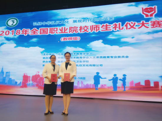 9月16日—17日,由中国职业技术教育学会主办,中国职业技术教育协会人文素质教育专业委员会协办,北京市海淀区卫生学校承办的2018全国职业院校师生礼仪大赛(教师组)决赛在北京举行,共有来自国内50余所职业院校的80多名教师选手参加大赛。经过激烈角逐,我校旅游学院教师团队在比赛中脱颖而出,其中余楠老师获得个人总分一等奖和全部三个分项目的单项奖;郭娜老师获得个人总分三等奖和两个分项目的单项奖;周菲菲老师获得优秀指导教师奖。