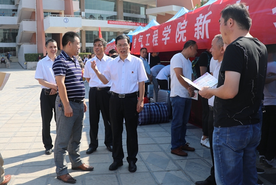 校党委副书记、校长祝玉华检查新生报到准备情况