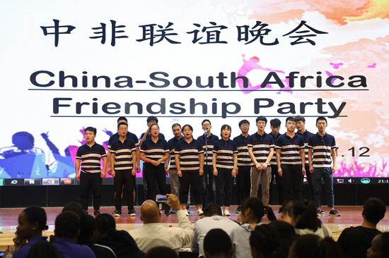 一段活力十足的开场秀拉开了晚会帷幕。我校学生带来的武术表演《双节棍》、书法表演等,使南非留学生感受了我国深厚的历史文化底蕴。水利工程学院学生潘资杭现场泼墨书写“友谊长存”四个字,并将其赠送给Errol Randall Gradwell。南非留学生表演的传统舞蹈《MANGO》别具一格,淋漓尽致地展现了南非的传统文化,也表达了南非留学生对黄河水院的热爱之情、对水院师生的感激之情。中间穿插的互动游戏将晚会气氛推向高潮。大合唱《朋友》充分表达了我校学子期待与南非留学生搭建友谊桥梁的美好愿望,以及在新时代不忘初心,砥砺前行,共创美好明天的决心。晚会在优美的歌舞表演中落下帷幕。(供图:水利工程学院)