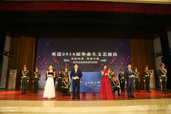 6月8日上午,我校由学生处、校团委、艺术系(艺术教育中心)联合举办的以“追逐梦想 青春不散”为主题的欢送2018届毕业生文艺演出在学生活动中心报告厅隆重举行。校党委副书记、校长祝玉华,党委副书记、工会主席王卫东,党委副书记刘卫锋,副校长焦爱萍,以及相关职能部门负责人、各院(系部)负责人、毕业班辅导员、教师代表、800余名毕业生代表等共同观看了演出。