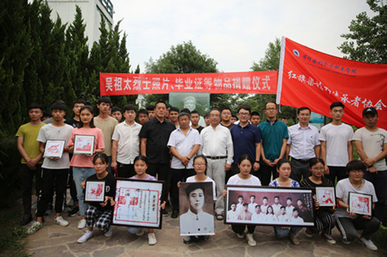 6月2日下午,我校优秀校友吴祖太烈士遗物捐赠仪式在我校鲲鹏山水利水电发仿真实训基地吴祖太烈士雕像前举行。林州市团委副书记刘昭、林州市青年教育培训中心董事长付永红、林州市著名作家吕志勇、摄影家傅浩、红旗渠精神青年传播者秦晨凯,我校团委书记李聪、副书记范龙及红旗渠精神传承者协会70余名学生参加捐赠仪式。仪式由范龙主持。