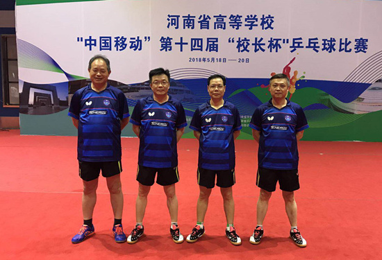5月19日上午,河南省高等学校第十四届“校长杯”乒乓球比赛在安阳工学院拉开帷幕。我校领导许琰、王卫东、杨士恒、刘卫锋、刘玉宾等组成的代表队奋勇拼搏,经过激烈角逐,最终斩获第三名的优异成绩。