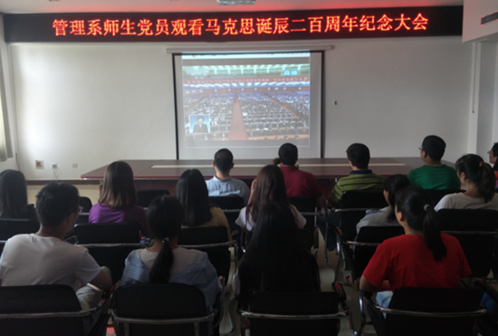 管理系党总支组织师生观看纪念马克思诞辰200周年大会实况