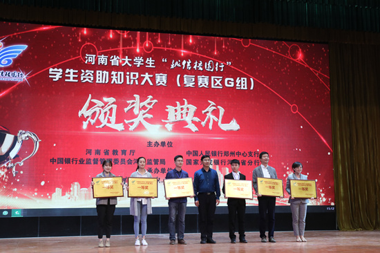 4月18日—20日,由河南省教育厅、中国人民银行郑州中心支行、中国银监会河南省监管局、国家开发银行河南省分行主办,我校承办的河南省大学生“诚信校园行”学生资助知识大赛复赛区G组赛事在我校学生活动中心成功举办。河南省学生资助管理中心主任宋振、副主任田新,我校党委书记许琰、党委副书记刘卫锋等莅临比赛现场,河南省学生资助管理中心高校科科长宋富强、马武和我校相关职能部门负责人、1000余名师生观看了比赛。