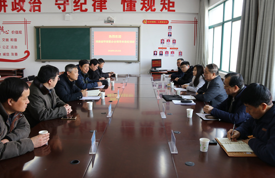 1月23日,河南省环保联合会会长王争亚一行4人来我校调研指导工作。我校在5号实训楼408室召开座谈会,副校长刘玉宾出席座谈会,科技处、环境与化学工程系等部门负责人及环境与化学工程系教师代表等参会。