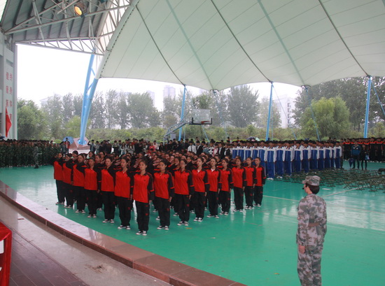 9月15日下午,我院2014级新生军训会操在风雨球场举行。学生处副处长王国英、承训部队首长及各系分管学生工作的领导共同观看了会操。大会由学生处教育管理科科长柴杉主持。