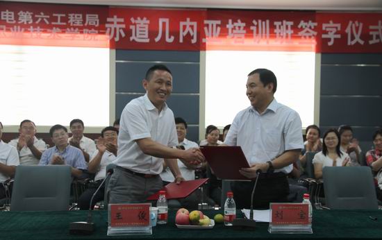 随后,刘宝副局长发表讲话,对学院的热情接待表示感谢,着重介绍了中水六局的发展历程,及在国内外水利水电建设行业取得的成就,尤其是自2007年以来在赤道几内亚、肯尼亚、厄瓜多尔等国家,承建的诸多国际工程,赢得的中外赞誉。目前,中水六局在赤道几内亚承建吉布洛水电站、巴塔国家电网、吉布洛反调节水库等5个工程项目,合同金额8.4亿多美元,后续巴塔国家电网二期、国家海底电缆工程等项目正在洽谈中,合作前景广阔。刘宝副局长提到,这些工程均附有为国际工程培养运行、管理技术人员的培训合同,培训市场潜力巨大,对培训单位开拓国际市场提供了良好的机遇,同时也充满了挑战。刘宝副局长还介绍了赤道几内国情、学员的学习基础、生活习惯等特点,希望本次合作能顺利完成,进一步促进双方合作关系良好的发展。