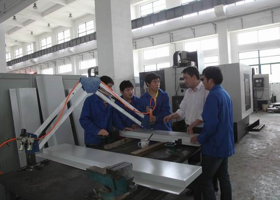 机电系主任胡修池十分重视此项任务,要求全力以赴支持信息系技能大赛的备战。专业教师张延和范龙,牺牲休息时间,加班加点完成了设备图纸的设计与绘制。5915日,张延又带领学生完成了整套设备的加工。该设备上有2000余个M5螺纹孔需要加工,他们使用科技创新小组自制的新型摇臂气动攻丝机高效的完成了任务。目前,整套设备已经移交信息系,信息系参赛师生已经开始利用此套设备进行紧张训练,保证了技能大赛的正常备战。