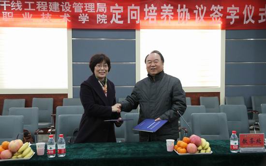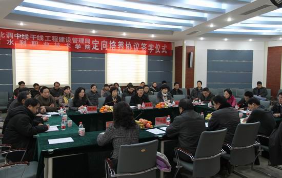 38上午,我院与南水北调中线干线工程建设管理局合作培养协议签订仪式在学院演播大厅举行。南水北调中线工程建管局党组副书记韩连峰、副局长刘宪亮、人力资源部副部长肖军、人事处处长曹玉升,我院领导王卫东、副院长刘紫婷、学院有关部门负责人、部分骨干教师参加了签订仪式,仪式由副院长刘紫婷主持。