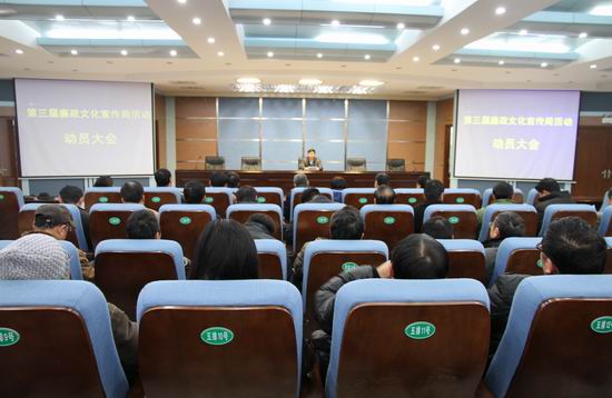 王书记在动员会上传达了学院党委关于开展第三届廉政文化宣传周活动的文件精神。按照文件部署,今年廉政文化宣传周活动的主题是:“崇德尚廉、自律修身”,自121日至1210日历时十天,主要开展4项宣传教育活动:一是开展“廉文荐读”活动。为广大党员干部推荐一部廉政教育好书,要求认真学习、认真感悟;二是观看反腐倡廉教育片。组织党员干部观看电影《杨善洲》,学习他公而忘私、清正廉洁的优秀品质和高尚品格,为广大党员干部敲响反腐的警钟,以达到“崇德尚廉、自律修身”活动目的;三是举办法制教育报告会。聘请法制战线的专家做法制报告,给大家上一堂深刻的法制教育课;四是开展廉政诗文大赛。通过廉政诗文的创作,提高大家对清廉奉公的认识,激发大家对廉政诗文的创作热情,达到“以文养心”的目的。王书记在会上还针对今年时间紧迫的事实,对活动的开展提出了具体的要求。
