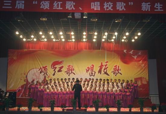 9月29日,美丽的校园花如海、歌如潮,由院团委主办,院学生会协办的黄河水院第三届“颂红歌、唱校歌”2011级新生合唱比赛在风雨球隆重举行。院团委、各系领导、教师及4000余名学生共同观看了比赛。