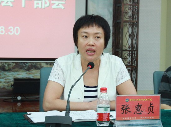党委书记张惠贞在会上做重要讲话,要求全体中层干部一定要统一思想,把思想统一到人才培养这项中心工作上来。她说,回顾十年来学院的发展,我们坚定不移地走高职教育道路取得了辉煌成绩,学院在硬件建设(如办学规模、新校区建设)和软件建设(如师资队伍、人才培养水平评估、示范性建设)上取得双丰收。目前,我们仍然要坚定不移地走高职教育发展道路,坚定不移地抓内涵建设,把示范性高职院校建设不断推进。