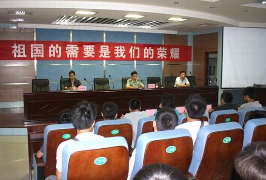 讲座在我院学术报告厅准时开始。徐部长分别从今年大学生入伍政策、当前征兵形势、国际国内兵役法现状和国防建设等四个方面给我院师生上了生动的一课。徐部长语言生动活泼、事例鲜明具体,使参加讲座的师生对应届毕业生入伍预征的重大意义有了更深层次的了解和认识。