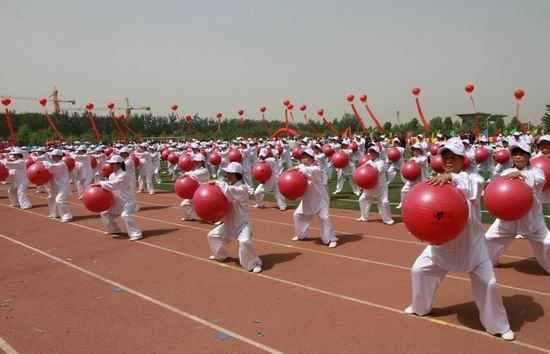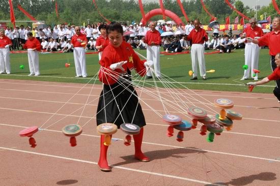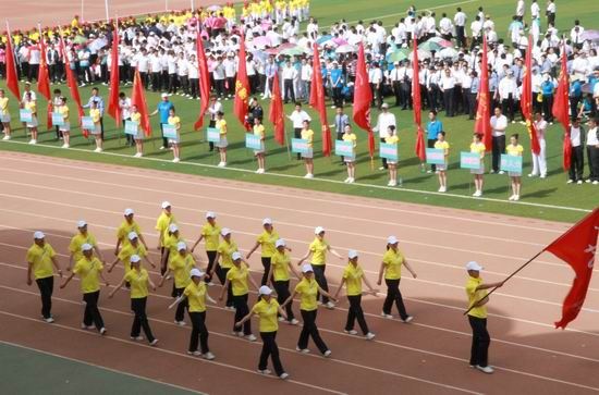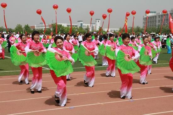 开幕式后,参会领导和运动员们共同观看了极富地方特色的盘鼓、空竹、扇子舞、太极球等文体表演。518日下午,运动会的广播操比赛在我院风雨球场展开了角逐。