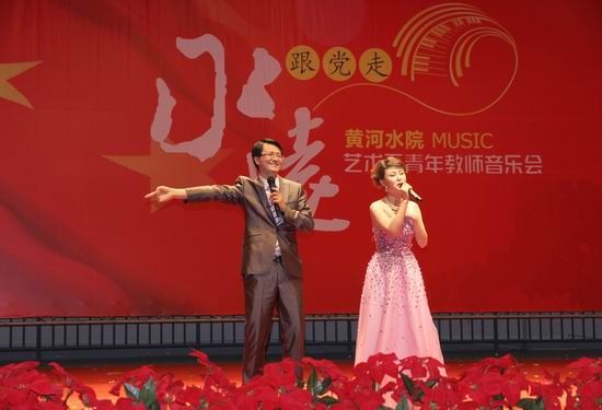 音乐会以艺术系青年教师张嫚、李冰、赵巍合唱的一首欢快的《让我们舞起来》拉开序幕。随后,青年教师们展现了他们的才艺。张嫚的《跟你走》歌声美妙绝伦,谷献晖的《美丽的心情》欢快洒脱,李冰的《天路》荡气回肠。演出中,刘紫婷副院长的一曲《浏阳河》博得了场下阵阵掌声,也将晚会的气氛推向了高潮。随后的演出同样精彩,凭借着精湛的技艺,张欣将钢琴曲《黄河》、《致爱丽丝》演绎的淋漓尽致;意大利名曲《TIME TO SAY GOODBYE》展现了张嫚与郝黎闻的精湛的演唱技巧;赵巍的《在那桃花盛开的地方》气息悠长、质朴自然;郝黎闻的《把一切献给党》和谷献晖的《党旗更鲜艳》唱出了青年教师的心声,也体现了今晚“永远跟党走”音乐会的主旋律。两位主持人也即兴带来了精彩的男女对唱《东方之珠》,为晚会增添了靓丽的色彩。整场音乐会高潮迭起,热烈的气氛几乎感染了每一位师生,既展示了艺术系青年教师深厚的专业实力,更充分表达了他们对党的热爱。