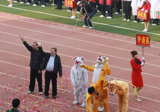 阳光和煦,春意盎然; 彩旗飘扬,人声鼎沸。4月14日上午,我院2011年春季田径运动会在祥云体育场隆重开幕。院领导张惠贞、刘国际、孙五继、茹正波、王卫东、刘紫婷出席开幕式。运动会主席团成员、各系部处主要领导在主席台就座,全院部分师生员工参加了开幕式。开幕式由院党政办主任杨士恒主持。