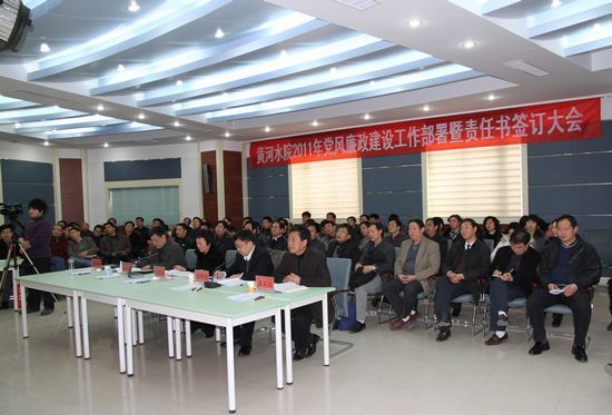 3月24日下午,我院在四号实训馆演播厅召开2011年党风廉政建设工作部署暨责任书签订大会。院领导张惠贞、刘国际、孙五继、茹正波、王卫东出席会议,全院各部门负责人参会。会议由党委副书记、院长刘国际主持。