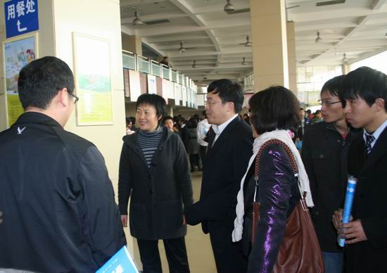 9时左右,供需见面洽谈正式开始,5000余名2011届毕业生陆续进入会场,投递简历,希望能够在洽谈会中找到自己心仪的就业岗位。此次参加供需见面洽谈会的企业有164家,共提供岗位4741个,基本涵盖了我院开设的各个专业。洽谈会上,院领导张惠贞、刘国际、刘紫婷来到会场,详细了解了部分企业的招聘情况,以及我院学生的求职意向、就业准备情况等。院领导表示,学院会尽可能联系用人单位,为毕业生提供更多的就业机会。毕业生也应转变就业观念,从基层做起,不断积累工作经验,提高自身综合能力。此次供需见面洽谈会后我院还会针对管理、财经等不同专业分类举行专场招聘,以便更好的促进学生就业。