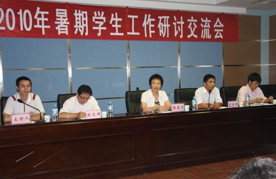 78日,我院2010年暑期学生工作研讨交流会暨十佳辅导员评选述职答辩会学术报告厅召开,院党委副书记、工会主席张惠贞出席了会议,全院学生工作人员参加会议。会议由学生处副处长朱焕立主持。