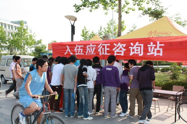 据悉,2010届毕业生入伍预征报名持续到6月15日,我院的毕业生入伍预征咨询活动将持续一周时间,活动结束后,毕业生可以到保卫处政保消防科继续咨询报名。