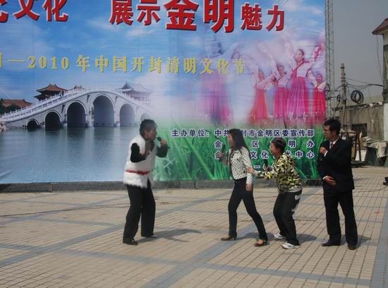 4月4日上午,在党委宣传部和团委的组织下,我院部分师生来到西郊乡广场,参加了开封清明文化节金明区专场演出。