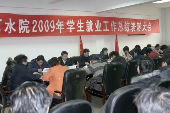 2010年1月28日,我院在行政楼二楼会议室隆重举行2009年学生就业工作总结表彰大会,院领导张惠贞、刘紫婷出席会议,相关职能部门领导,各系主任、书记、工学办主任及就业指导教师参加了会议。会议由招生就业中心副主任李纪宾主持。