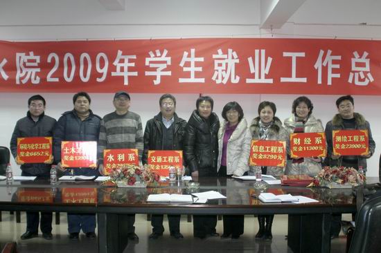 党委副书记、工会主席张惠贞宣布了关于奖励我院2009年学生就业工作先进部门的决定,授予交通工程系、测绘工程系、水利系、信息工程系等4个系“学生就业工作先进集体”荣誉称号,授予孙天星等7名同志“学生就业工作先进个人”荣誉称号。会议还为获得表彰的单位颁发了19.9895万元的奖金。