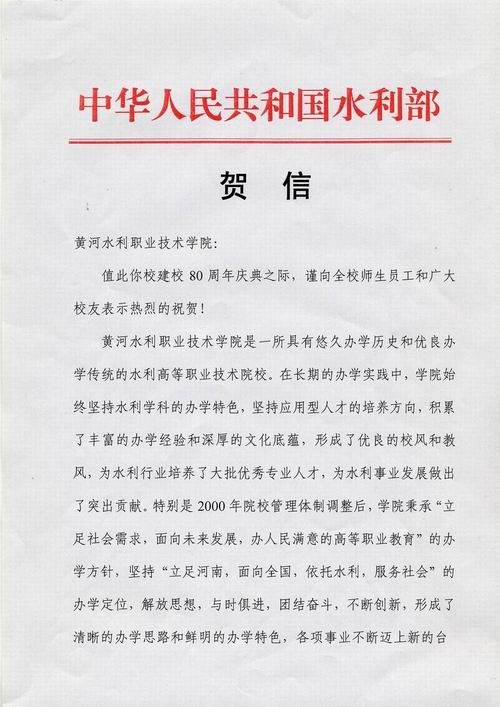 教育部高教司、水利部、黄委会为我院校庆发来贺信