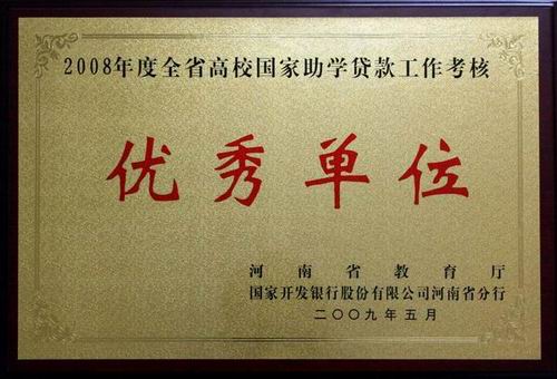 日前,河南省教育厅对全省高校2008年国家助学贷款管理工作和资助工作考核结果进行了通报,我院荣获“2008年度全省高校国家助学贷款工作考核优秀单位”和“2008年度全省高校学生资助工作考核优秀单位”,这是我院国家助学贷款工作连续第四年考核优秀,学生资助工作连续第二年考核优秀。
